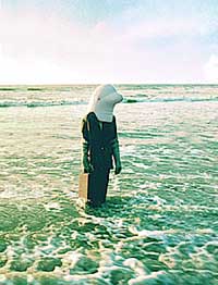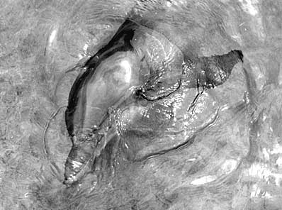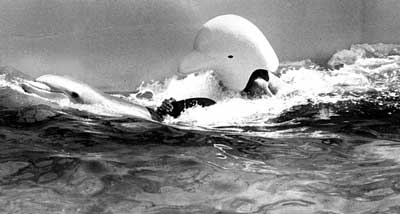 DOLPHIN PERFORMANCE PROJECT 1974 - 1976 After grad school I was lost. A teaching job in Kentucky that had been offered not once but twice by separate individuals in the department each time was mysteriously withdrawn. so frustrated by the absence of teaching opportunities I chose to set my sights on a different level. public art. I felt that it was a shame that art was so distant from society and the public. .. I looked at the issue and concluded that art was one of a kind hand made objects that were made by artists, bought by collectors, sold by dealers, and reviewed by critics. that was the extent of the public audience. contrast that with books, recordings, movies, theater, etc. .. and you see a huge difference in the size of the audience and the resources available to the creative talent involved. art was estranged from the public for economic reasons. I prophesized a change in the estrangement. I saw the change coming about through performance art that would be like a bridge between art and the public without the economic obstacle posed by the high price of handmade objects that inform and charm and seduce slowly over time when you literally live with them. you neither fall in love with art nor truly understand it in the general sense by going to museums where it is free. you have to have some of it in your house. the only ones who go to gallery openings are artists, dealers, collectors and critics. so I gave a lecture on the topic at the univ art museum Berkeley. the lecture was in the spring of 1974 just months before I was to move to st. Augustine Florida and begin my dolphin performance project. that year I had received a grant from the national endowment for the arts to do the project. the year before I had been awarded the grant but after I mistakenly spoke to a GAO person the grant was taken away in response to a kangaroo court wherein a few projects like mine that were outside the traditional modes of sculpture, painting etc. were put on trial. the year before that I applied and because a friend who had received funds from HEW coached me in the application process and my proposal was presented like an HEW proposal it was denied on the assumption that it was a joke. a joke that I had spent year writing. a few days before the Berkeley museum lecture a reporter called me up and asked me what I planned to do. at the time the project was called porpoise opera project because that is what marineland in fla called their bottle nosed dolphins and opera was something they could relate to also. so she continued asking," are you going to dress them up in opera clothes?" I replied,"no. they would not be able to swim for one thing and even if they could you wouldn't be able to see what they are wearing under the water." I continued that I was not forming any preconceptions. I thought I had handled that reasonably well. nope. About a year later my name and the project turned up in a New Yorker list of "golden fleece award" endeavors wherein it said i was going to dress dolphins in opera clothes. St. Augustine, Fla. is the oldest city in America. at least that is what they say there on their tourist brochures and in the historic area of town. marine land is about 30 miles south on hwy A1A and about 30 miles north of Daytona Beach. it is right next to the beach and has a wonderful history. twenty thousand leagues under the sea was filmed there. creature from the black lagoon was filmed there. I have a great photo of me in a giant larvae costume in front of a big rock with a plaque embedded in it that says marine land , 1936 (see photo). when I arrived there in the summer of 1974 it was not new to me . I had been there before to talk about the project with the president of marineland, cliff Townsend. marineland paid my way a few years before and I stayed out there in the marineland hotel and had a free pass for anything I wanted at the very nautical restaurant and bar. I still remember the warm nights when I would walk on the beach and smoke a joint. it was so enchanting and I was so fulfilled . .. I had realized a dream. I was going to have the opportunity that no one gets let alone dares to dream. I was going to be able to spend a year with two young female dolphins for the purpose of making art. the joint didn't do anything. nothing could eclipse the high I was on from the situation. the moon above the black silky sea. the outline of the tropical jungle across the highway. the flamingo's all around. the sound of the surf. the warm humid salty air. the free meals with a view of the surf right outside the window. and the dolphins. . . the dolphins made everything I just mentioned plain and common by comparison. I felt blessed. I was living on the beach in town or just outside of town. literally on the beach. the house was like a cardboard box. no heater. the water smelled like sulfur. and I noticed that the cars had holes in them. when I asked I was told, "oh yeah, down heaah the cars rust out from the salt air. .. you might could get yours undercoated to prevent it." I would occasionally see a car with what looked like a blister under the paint. one time I touched it with my finger and my finger when through the body and left a hole. oh yeah, the insects. cockroaches the size of mice were everywhere. rhinoceros beetles that fly without seeing crash into you. no-see-ems so small you can't see them infest your arms at exactly 4:30 pm every day the stinging would commence. and I should not forget to mention another detail. hurricanes. I experienced 60 mph winds and that was enough to understand I did not want to be around for 100 mph hour winds.. . I missed my chance to appreciate the tornado that took out the Cadillac dealership one night when I was sleeping. but wait! that's not all! along with all that you get LIGHTNING STORMS AND THUNDER that leaves a metallic taste in your mouth because there is no delay between the flash and the CRACK- BOOM!! it is right there where you are and causes t